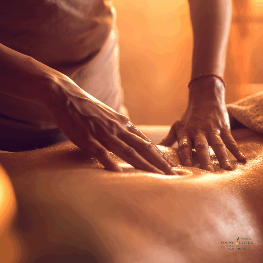 Sanfte Ausstreichungen, gezielte Grifftechniken und reine ätherische Öle entlang deiner Wirbelsäule und auf deinem Rücken.